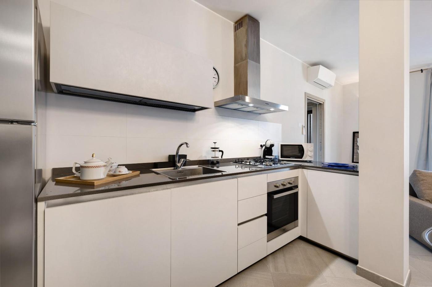 Appartamento Deluxe con 2 Camere da Letto e Balcone. This spacious apartment includes 1 living room, 2 separate bedrooms and 2 bathrooms with a shower and free toiletries. In the well-equipped kitchen, guests will find a dishwasher, kitchenware, an oven and a microwave. The apartment offers air conditioning, a washing machine, a private entrance, a coffee machine and a TV. The unit has 4 beds.