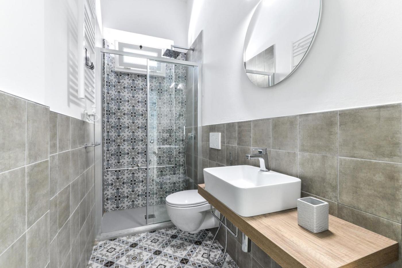 Appartamento con doccia. Featuring a private entrance, this air-conditioned apartment is comprised of 1 living room, 2 separate bedrooms and 2 bathrooms with a shower and a hairdryer. The apartments kitchen, which has a dishwasher and a microwave, is available for cooking and storing food. This apartment features a washing machine, a coffee machine and a TV with satellite channels. The unit offers 3 beds.