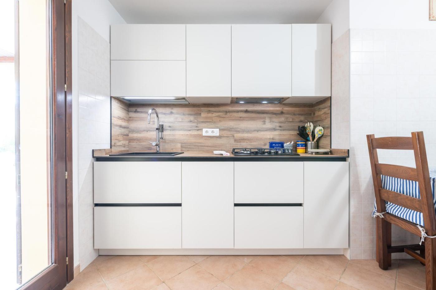 Questa casa vacanze comprende 3 camere da letto, 2 bagni, lenzuola, asciugamani, una TV, una cucina con utensili e una terrazza con la vista sul giardino.